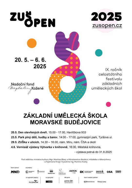 V případě nepříznivého počasí se akce nekoná. - 4.6. Vernisáž výstavy prací žáků výtvarného oboru, 16:00, Městská knihovna MB, výstavu můžete navštívit až do 31.8.2025